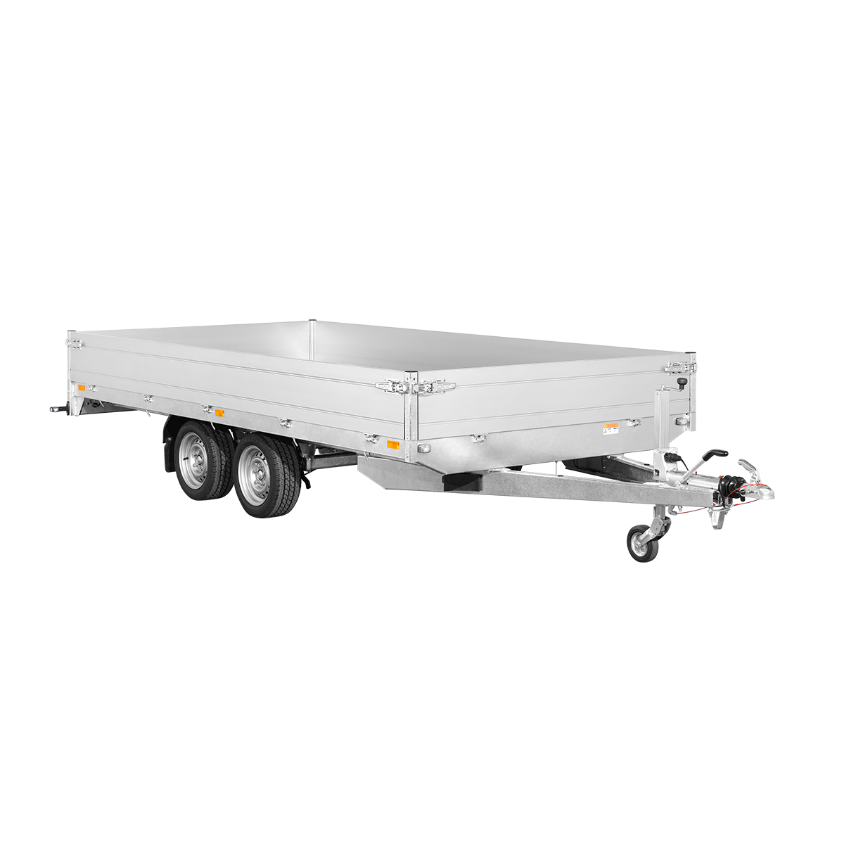 Remolque basculante hidráulico de 2 ejes con soporte lateral – Ruedas en el exterior